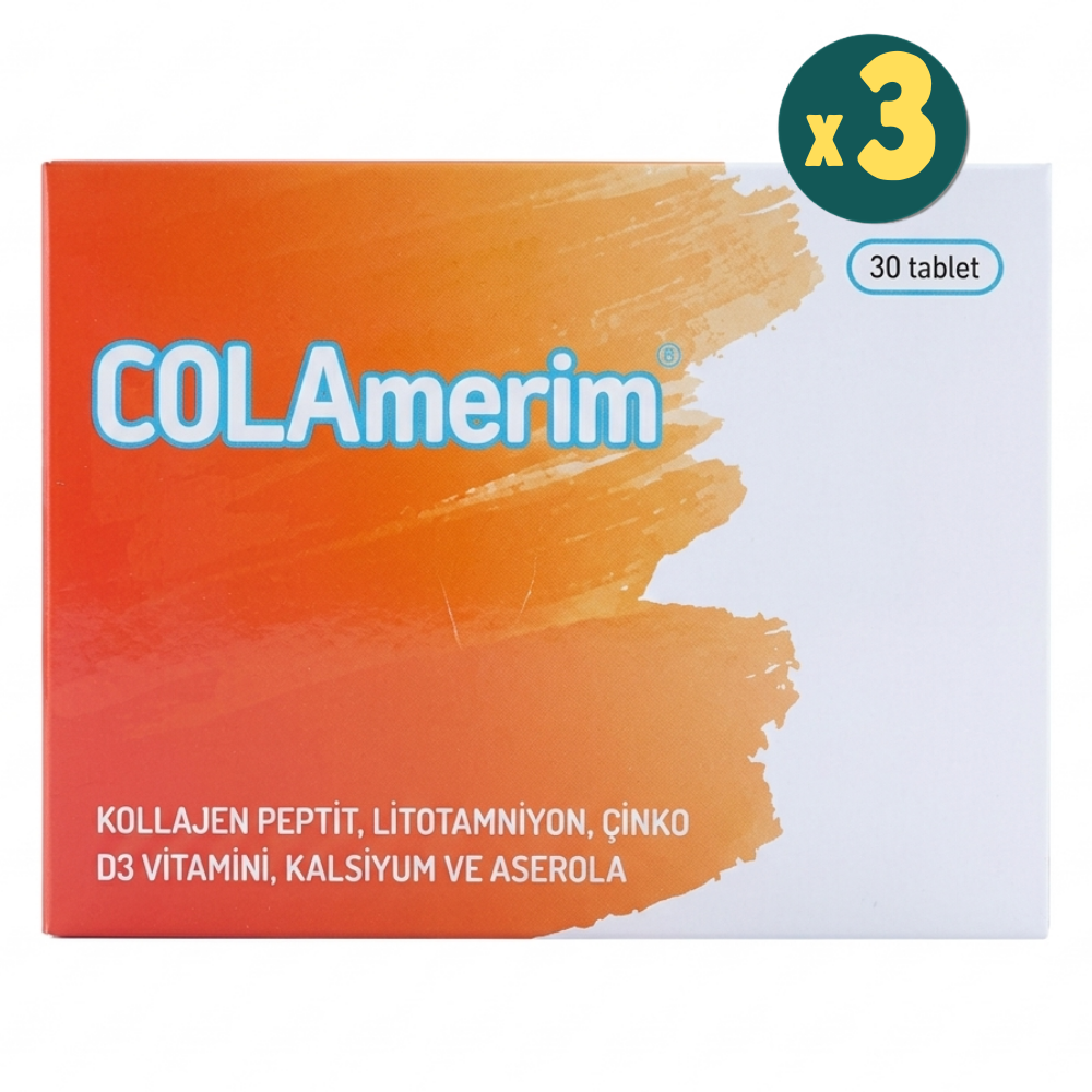 Colamerim 30 Tablet, bağ dokusunun esnekliğini ve normal fonksiyonlarını desteklemek amacıyla formüle edilmiş premium bir gıda takviyesidir. Dielen Laboratories tarafından Fransa’da üretilen bu ürün, içeriğindeki PROMERIM® adı verilen patentli deniz kolajeni ile sektörde dikkat çekmektedir. Yüksek oranda biyoyararlanım sunmak üzere 5000 daltonun altında molekül ağırlığına sahip hidrolize balık kolajeni peptitleri içerir. Bu düşük molekül ağırlığı, kolajenin vücut tarafından çok daha hızlı ve etkili bir biçimde emilmesini sağlar. İçeriğindeki kırmızı deniz yosunundan (Litotamniyon) elde edilen doğal kalsiyum, aserola ekstresi, D3 vitamini ve çinko ile güçlendirilmiş olan Colamerim, genel zindeliğiniz için günlük beslenme rutininize güvenilir bir katkı sunar.