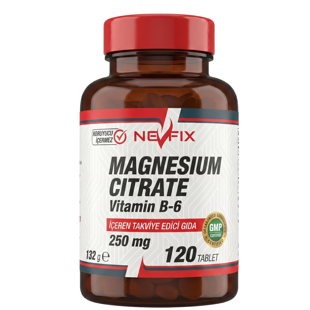 Nevfix Magnesium Citrate 250 mg Vitamin B6 10 mg 120 Tablet (8699273574534)