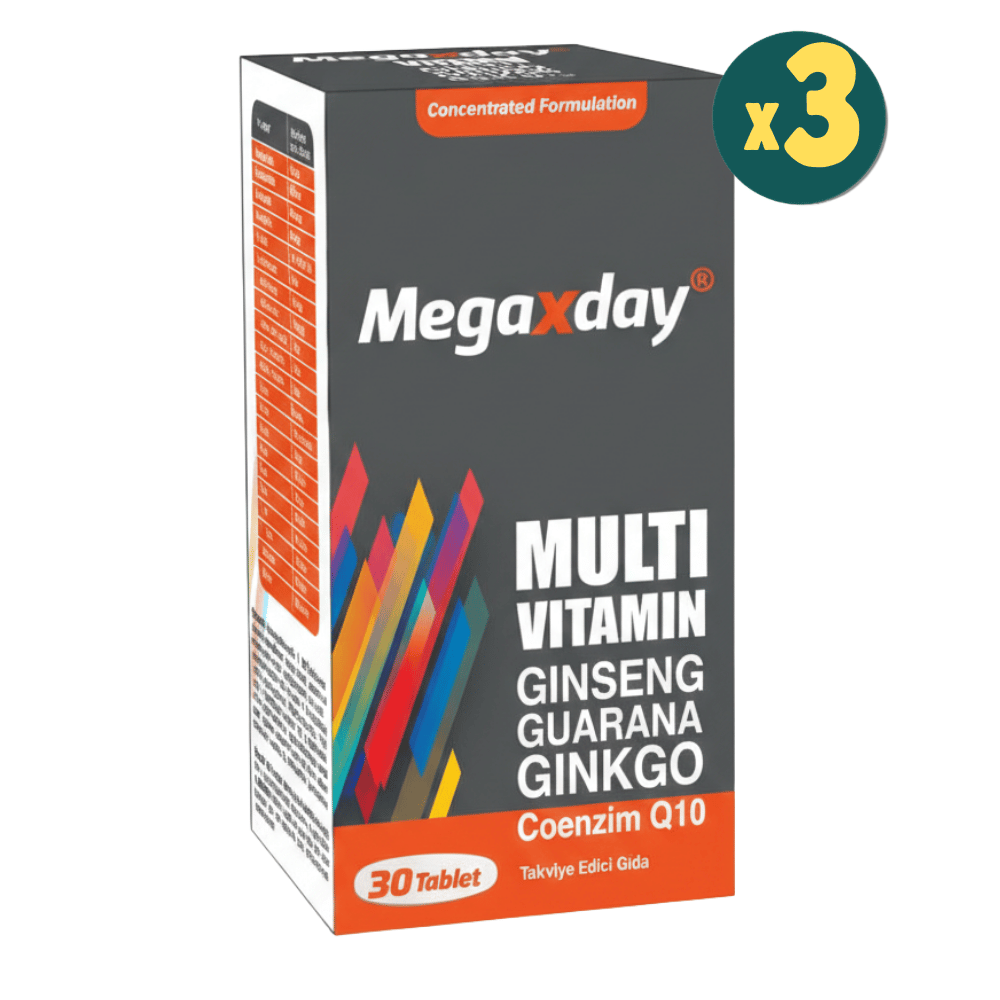 Megaxday 30 Tablet, yetişkinlerin günlük mikro besin ihtiyaçlarını karşılamaya yardımcı olmak üzere tasarlanmış bir multivitamin kompleksidir. Modern üretim tesislerinde, GMP standartlarına uygun olarak hazırlanan ürün, vücudun normal fonksiyonlarını destekleyen dengeli bir içeriğe sahiptir.