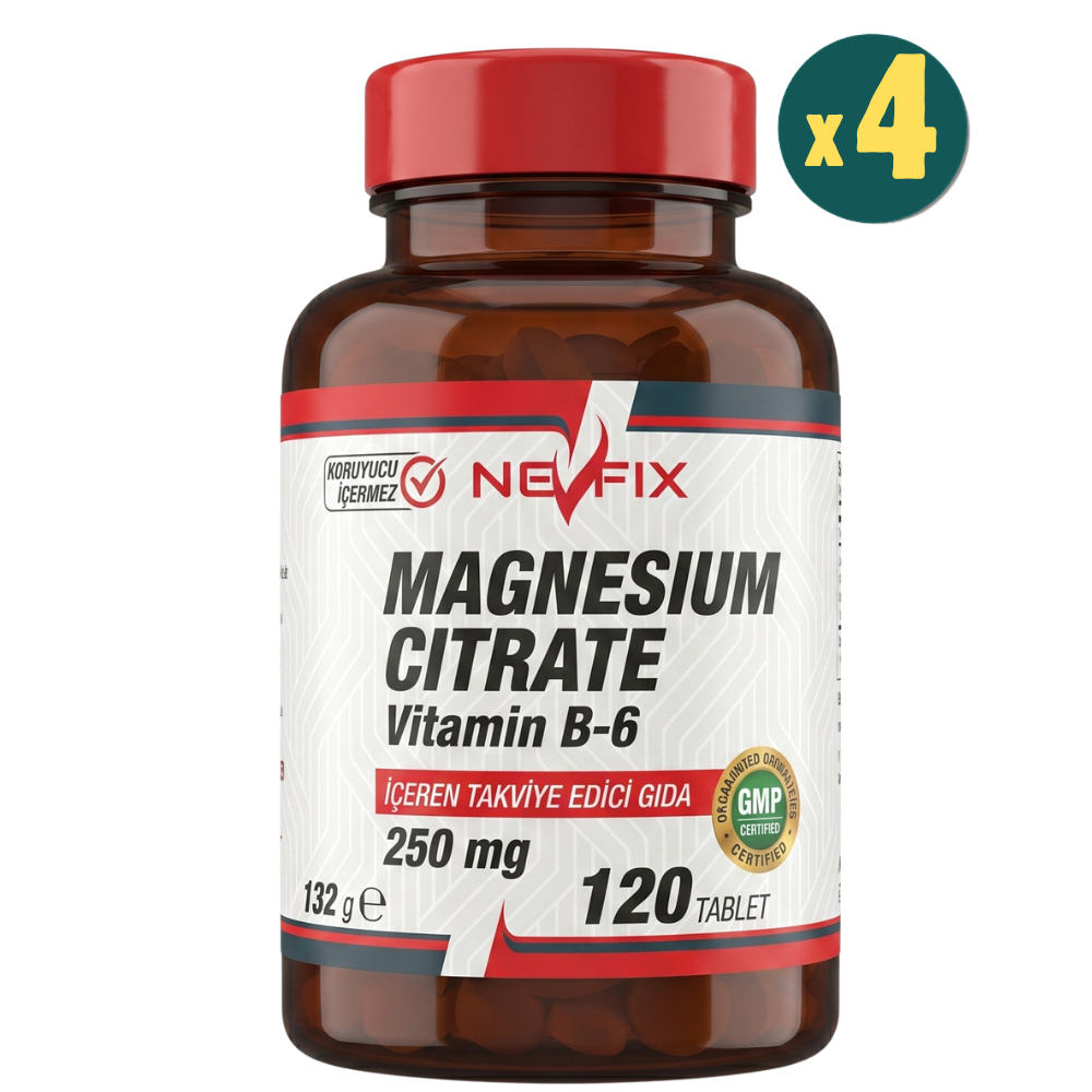Nevfix Magnesium Citrate 250 mg Vitamin B6 10 mg 120 Tablet 4 Adet (8699273574534-4)