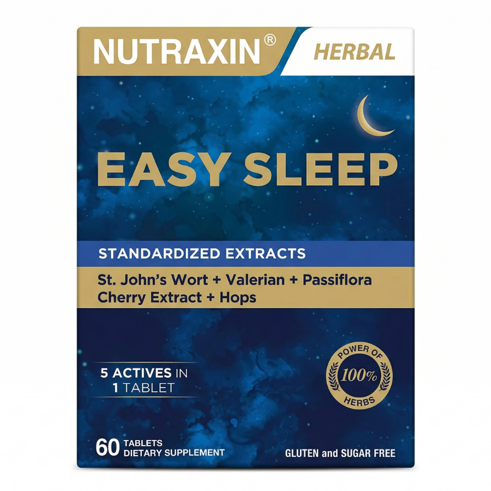 Nutraxin Easy Sleep, doğadan ilham alan bitkisel formülüyle öne çıkan yenilikçi bir takviye edici gıdadır. Günümüzün yoğun yaşam temposunda, bedenin doğal denge arayışına destek olmak amacıyla özenle formüle edilmiştir. Ürün; yüksek kalite standartlarında standardize edilmiş sarı kantaron, vişne meyvesi, kediotu (valerian), çarkıfelek (passiflora) ve şerbetçiotu ekstrelerinin güçlü sinerjisini sunar. Uluslararası kalite standartlarına ve iyi üretim uygulamalarına (GMP) uygun olarak ileri teknolojiyle üretilen bu tabletler, rahatlama ve dinlenme rutininize güvenle dahil edebileceğiniz katkısız bir içeriğe sahiptir.