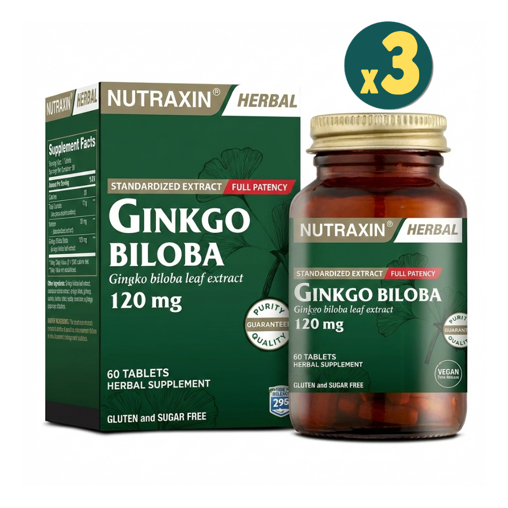 Nutraxin Ginkgo Biloba, "yaşayan fosil" olarak bilinen Mabet Ağacı (Ginkgo biloba) yapraklarından elde edilen standardize ekstre içerir. Zihinsel fonksiyonların keskinleşmesine ve kan dolaşımının (mikrosirkülasyon) düzenlenmesine yardımcı olmak amacıyla formüle edilmiştir. 60 tabletlik ambalajı, özellikle yoğun odaklanma gerektiren dönemlerde veya yaşa bağlı zihinsel yorgunluklarda uzun süreli ve güvenilir bir bitkisel destek sunar.