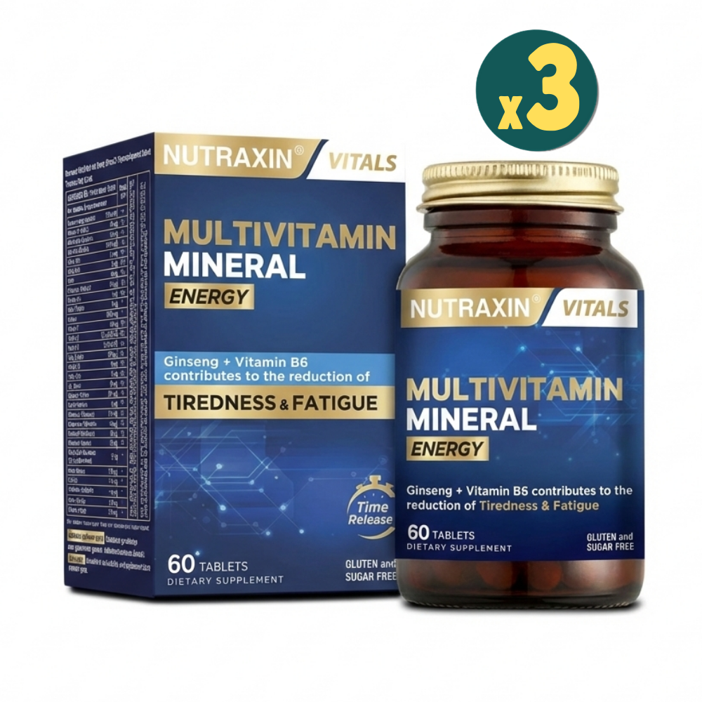 Nutraxin Multivitamin Mineral Energy, modern yaşamın getirdiği stres ve yorgunlukla başa çıkmak isteyen yetişkinler için tasarlanmıştır. Kalite standartlarına (GMP, ISO 9001) uygun olarak üretilen bu takviye, 13 vitamin ve 10 mineralin yanı sıra enerji üretimine katkıda bulunan bitkisel ekstreler içerir. Şeker, gluten ve yapay renklendirici içermeyen temiz içeriği sayesinde güvenilir bir günlük destek sunar.