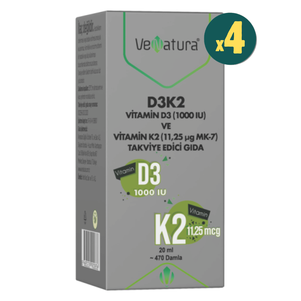 Venatura Vitamin D3K2 Damla 20 ml 4 Adet (8683229900836-4)